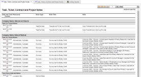All system, task, ticket, and project notes for a selected date range, sorted by resource and note type. |
