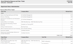 Description The number of hours worked on tickets, tasks and internal time in the selected date range, grouped by resource. Can be filtered by department.