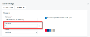 Drag and drop rows to determine the order in which tab groups are displayed. The active tab group with the lowest order number will be displayed when you log in. NOTE When a shared dashboard tab gets published to you, Autotask will attempt to put it at the end of your first (leftmost) tab group. If that tab group is already full (no more tabs can be added), that tab will not be added to the first tab group, but it will be available to be added to any tab group if you later add a new tab and choose the Display (re-open) existing tab option. |