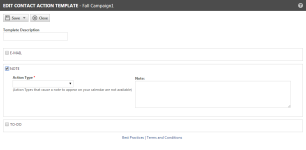 Actions are either created beforehand as a Contact Action Template and then selected on the Execute Contact Action page, or created on the fly on the Execute Contact Action page, and optionally saved as a template.