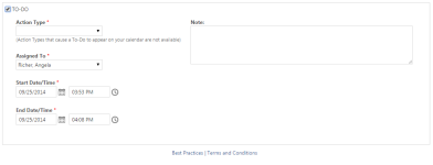 • The Create To-Do option adds a to-do associated with each contact or each selected contact in the contact group. All to-dos are assigned to you by default, but you can assign to-dos to another resource.