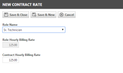 • Block hour contracts use contract rates if there are no available blocks, and no overage rate was set. If no contract rates were specified, the system role rates will be applied.