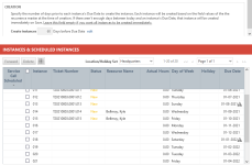 - Scheduled Instances contain an Instance number and a Due Date, but the ticket has not been created yet. The ticket for the instance will be created the number of days you specified in the Creation section on the Recurrence tab.