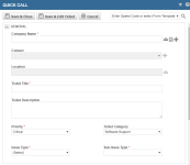 Because this is a streamlined version of the New Ticket page, it does not display all ticket fields and options. After completing the fields in the Quick Call page, you can click Save and Edit Ticket to save the Quick Call and open the Edit Ticket page to configure additional ticket options.