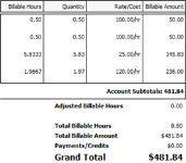 EXAMPLE Example 1: The billable amounts used to calculate the Total Billable Amount were rounded to two decimal places, that is, the same amounts as those displayed in the Billable Amount column. The Total Billable Amount equals 481.83, the exact amount of the sum of items in the Billable Amount column. There are no discrepancies.