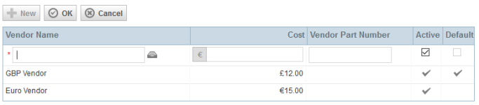 - If you are adding the first vendor, the Active and Default check boxes are selected by default. You do not need to select either box.