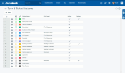 Tickets and project tasks share the same list of statuses. The Status field describes how close a ticket is to resolution, or how close a task is to completion. The field is required on all tickets and project tasks, regardless of category.