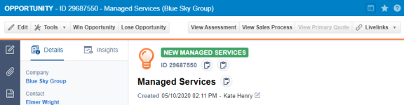 Insights do not contain any editable fields, although many contain hyperlinks that open the pages where you can modify the related entities.