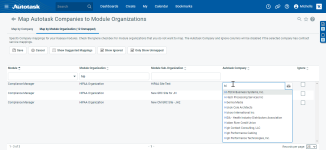 - If the module organization name contains the Autotask organization name and there are fewer than 20 matches, the mapping field is enabled and the dropdown list will show the matching organization names. You select an option to map it to the organization.