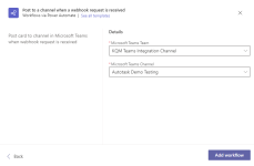 Depending on if you want the workflow to post within a chat or channel, choose the workflow template that best suits your needs. Each template has a different authentication type.