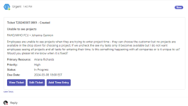 Clicking a button will open the respective ticket or time entry page in Autotask. If you are not logged in, you will be asked to authenticate.