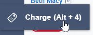 For field descriptions, refer to the context-sensitive help on this page: Ticket page > Quick Action bar > Charge (Alt + 4).
