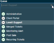 Queues are like folders for tickets. For your tickets, Level I Support is the default queue, and tickets in this and the Client Portal queue can be viewed by your customers, while all others cannot.