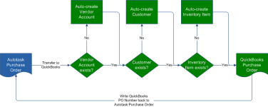 - The Autotask vendor organization names are matched to QuickBooks vendor names. If the vendor exists in QuickBooks, the purchase order is transferred to the existing vendor. If there is no exact match, Autotask will create a new QuickBooks vendor record. The only fields compared are the Name fields; address fields are not considered.