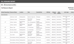 All active and inactive resources with all roles and billing rates as well as internal cost, grouped by department. |