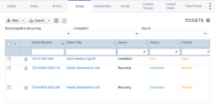 • On the Opportunity page, the Tickets tab will display tickets that were created in the Post Sale queue to facilitate the hand-off of the won opportunity to the service team, the ticket the opportunity was originally created from, any tickets created right on the opportunity, and any tickets that were manually associated with the opportunity.