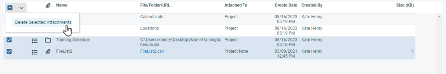 Multiple attachments can be deleted at once by selecting the attachments and choosing Delete Selected Attachments from the bulk menu.
