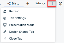 Dashboard tabs refresh automatically every 5 minutes. You can also click the tab context menu icon![]() |