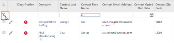 - Use the column filters or Advanced Filter to locate the contacts you want to remove. Refer to Using the advanced filter.