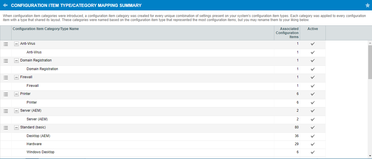 With the release of Autotask version 2020.1 and the new device categories, a device category was created for every unique combination of settings present on your Autotask instance's device types. Categories were applied to every device with a type that shared its layout. These categories were named based on the device type that represented the most devices, but you may rename them to your liking on this page.