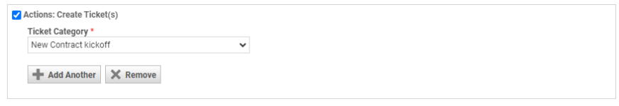 - If you want the workflow rule to create an additional ticket, select Add Another. You can have up to three tickets created by a workflow rule.