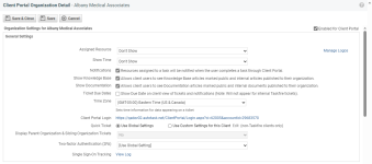 On the Client Portal Organization Detail page, you can customize Client Portal settings for an individual organization. To open the page, use the path(s) in the Security and navigation section above.
