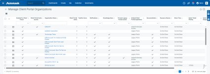Enabled for Client Portal | A check mark indicates that the client has the Client Portal turned on. By default, all organizations have Client Portal turned on and you simply grant users access on the Edit Contact > Client Portal tab. |