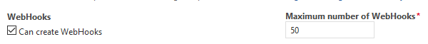 - Select the Can create WebHooks check box and enter the maximum number of webhooks users with this security level will be allowed to create.